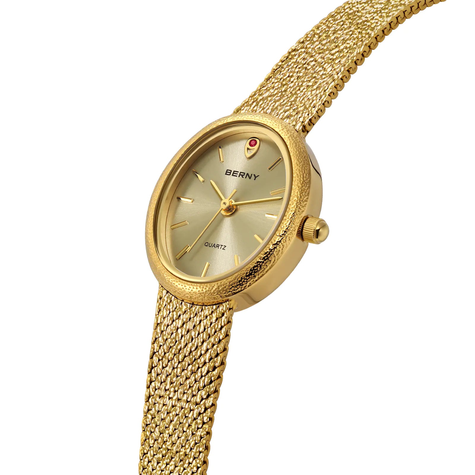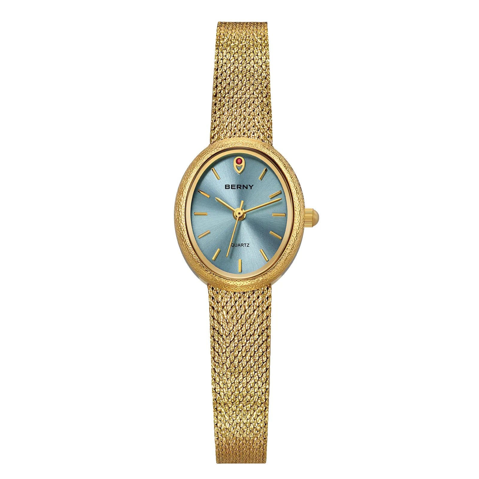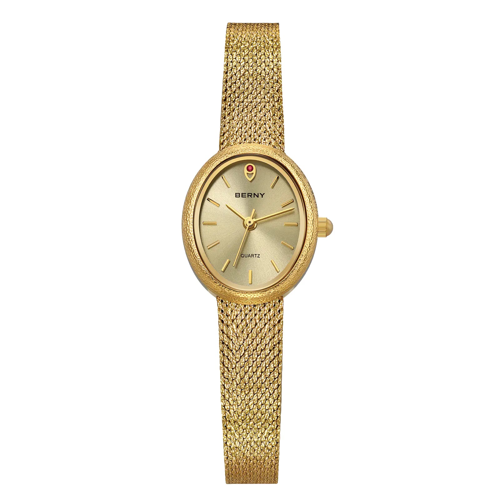 BERNY-Damen Quarz Tonneau Gold Uhr-2146L