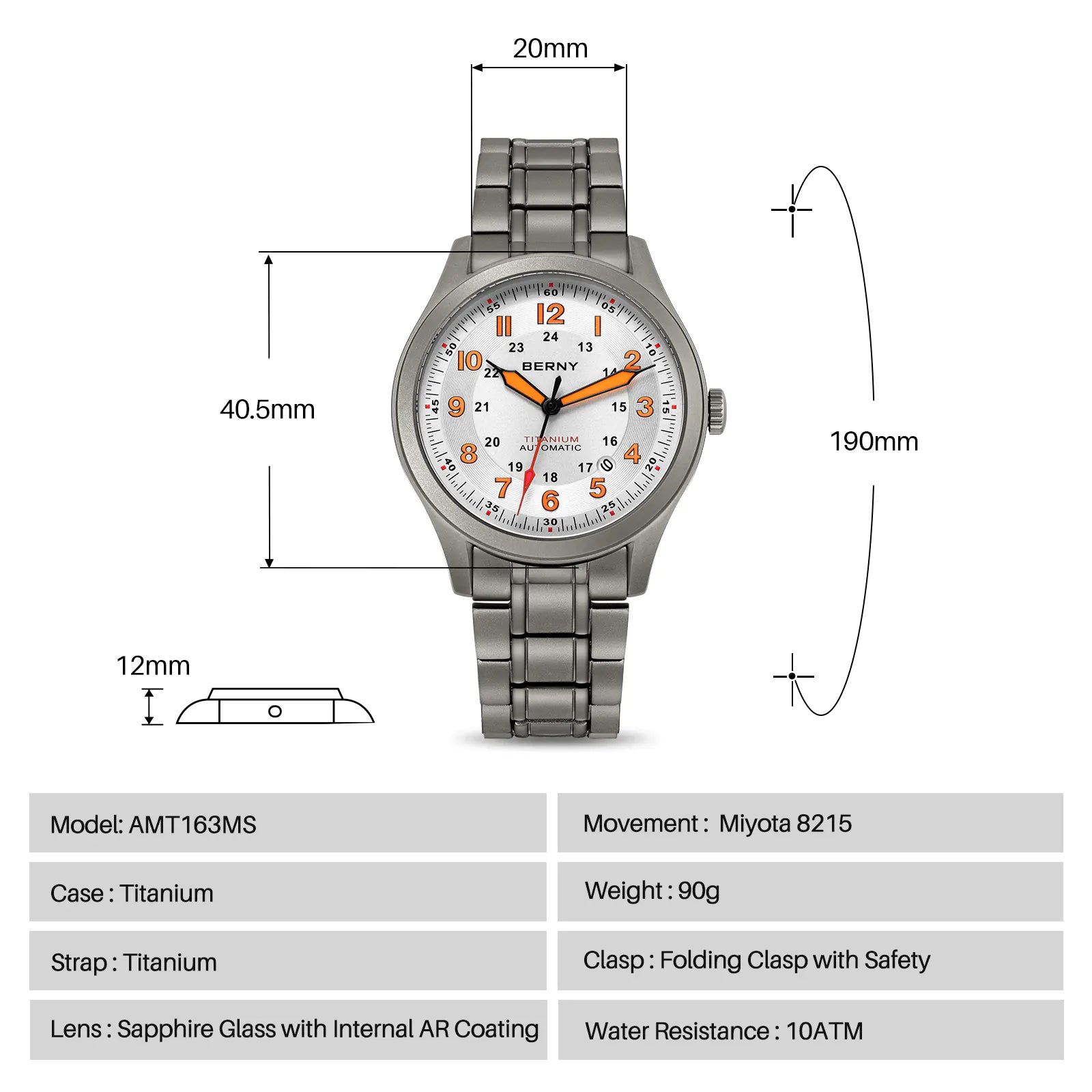 BERNY-Men Automatic Titanium Field Watch-AMT163MS